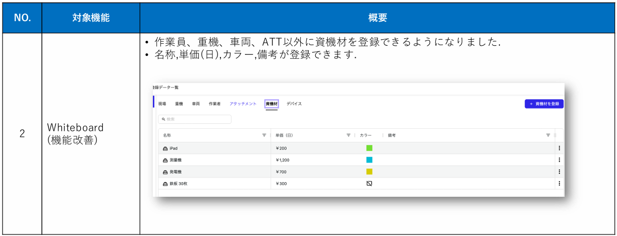 Smart Construction Whiteboardの定期アップデートについて、以下の日程・内容でリリースを行います。